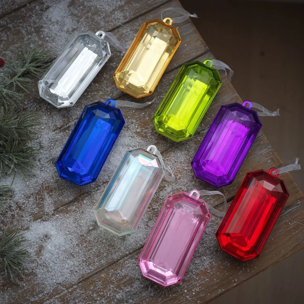This colorful gemstone ornament adds a sparkling touch to your holiday decorations. The square gemstone pendant design gives it a unique and elegant look. Its vibrant colors reflect beautifully under Christmas tree lights. Made from durable plastic, it is lightweight and easy to hang. The ornament works well on trees, wreaths, or garlands. It brings a cheerful festive charm to any holiday setup. The smooth finish helps it stand out among your seasonal décor. It is ideal for home, office, or party decorations. The sturdy structure ensures it can be reused each year. This ornament offers a simple way to enhance your Christmas display.
