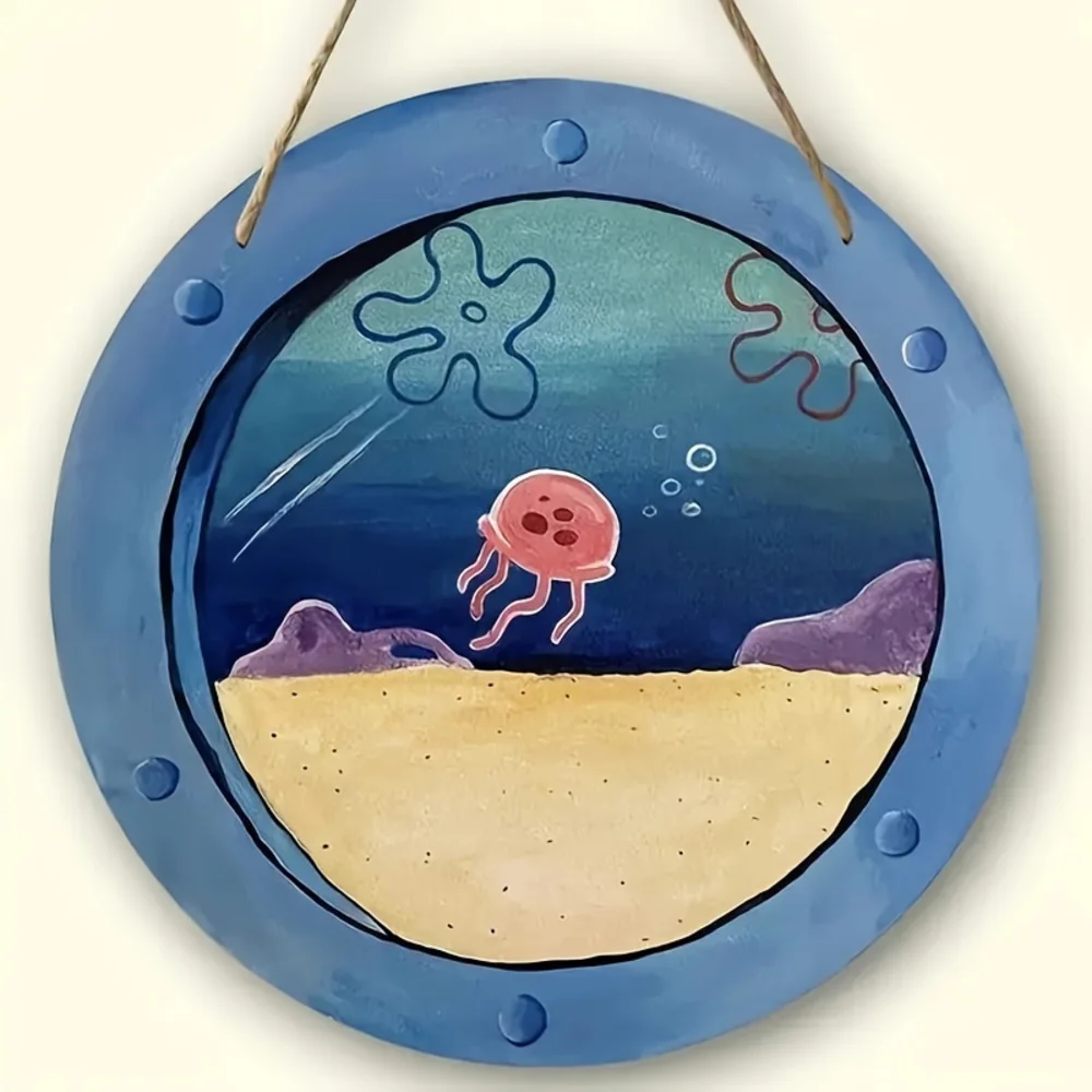 This charming jellyfish wooden sign brings a calming ocean theme to any space. The round design adds a soft, balanced look to your wall decor. Crafted in a country-style finish, it fits beautifully into farmhouse interiors. The vibrant jellyfish artwork creates a soothing coastal feel. Its 8-inch size makes it ideal for kitchens, cafés, or small accent areas. The wooden construction adds warmth and natural texture. This piece hangs easily on any wall for quick decorating. It serves as a lovely focal point in ocean-themed rooms. The design offers a unique blend of rustic charm and marine beauty. It makes a thoughtful gift for anyone who loves beachy or nautical decor.