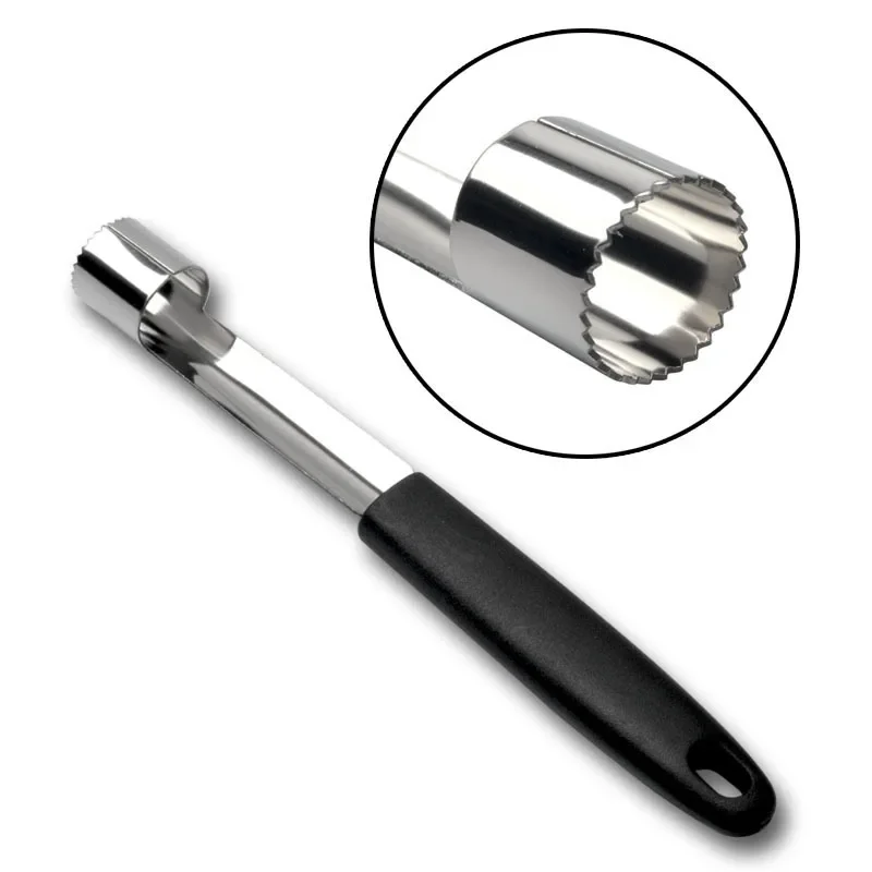 This stainless steel apple corer makes removing fruit cores quick and effortless. It cleanly cuts through apples, pears, and other fruits with precision. The sharp blade easily removes seeds without damaging the fruit. Its durable stainless steel construction ensures long-lasting use. The comfortable handle provides a secure and non-slip grip. Perfect for preparing healthy snacks, desserts, or salads. Compact and lightweight for easy storage in any kitchen drawer. Dishwasher safe for convenient cleaning after use. Suitable for both home kitchens and professional chefs. Simplify your fruit preparation with this efficient and durable apple corer tool.