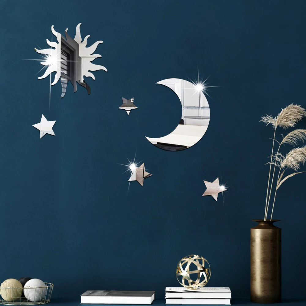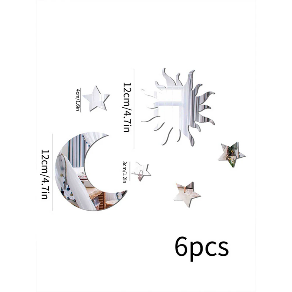 Add a touch of celestial beauty to your home with these 6PCS Star Moon Combination Mirror Wall Stickers. Crafted from high-quality acrylic, these stickers feature a sleek mirror finish for a modern, reflective look. The design combines stars and moons to create a dreamy, relaxing atmosphere. Each piece is lightweight and easy to install with a self-adhesive backing. They can be removed or repositioned without damaging your walls. Perfect for decorating bedrooms, living rooms, nurseries, or meditation spaces. The 3D effect enhances depth and visual appeal in any room. These stickers are both elegant and functional, doubling as small reflective accents. Ideal for DIY enthusiasts looking to personalize their home décor. Create a magical and calming environment with this star-and-moon mirror wall art set.
