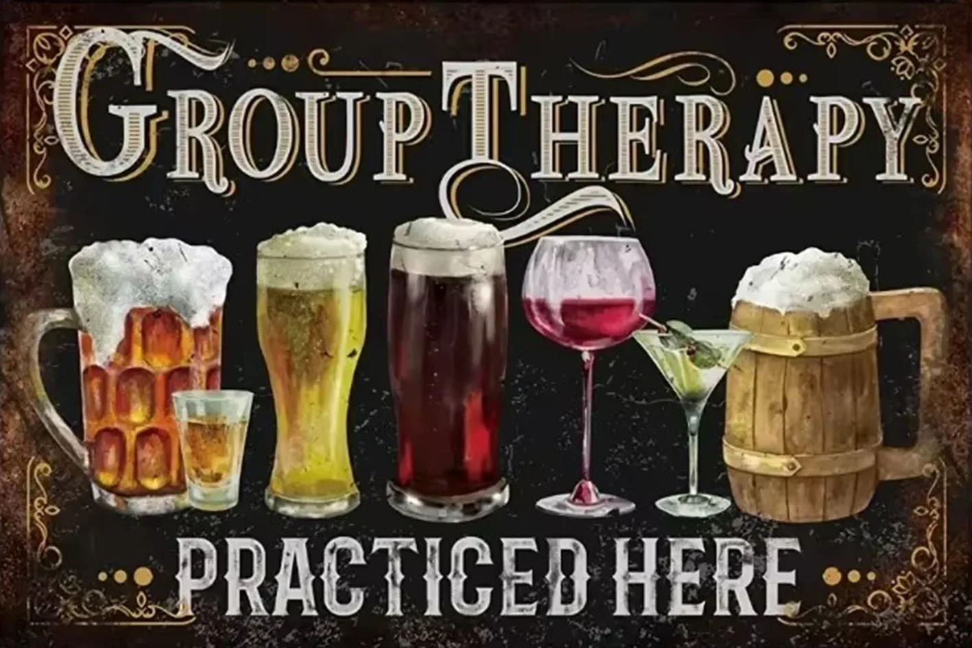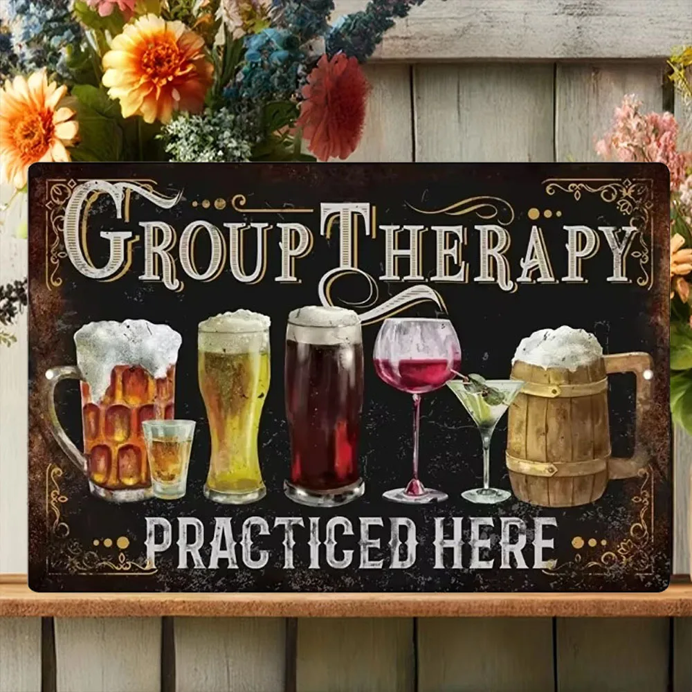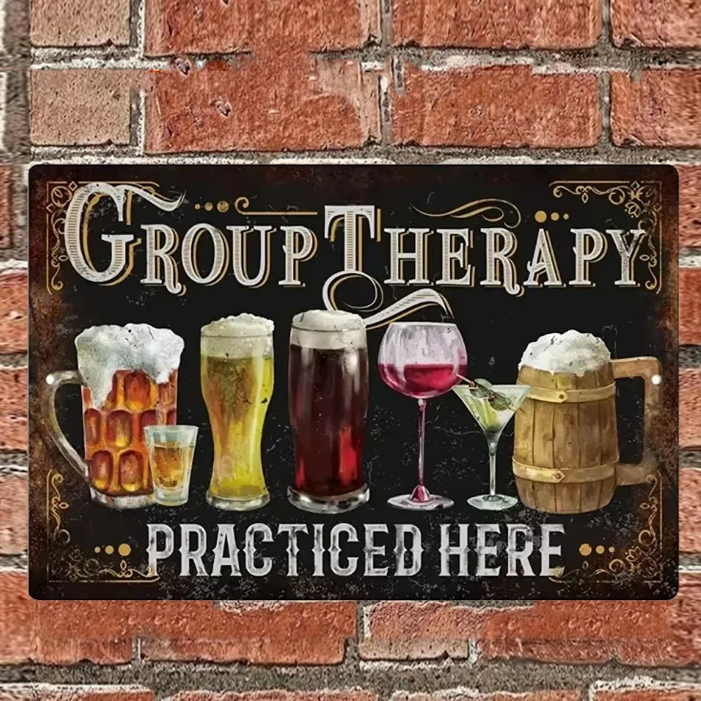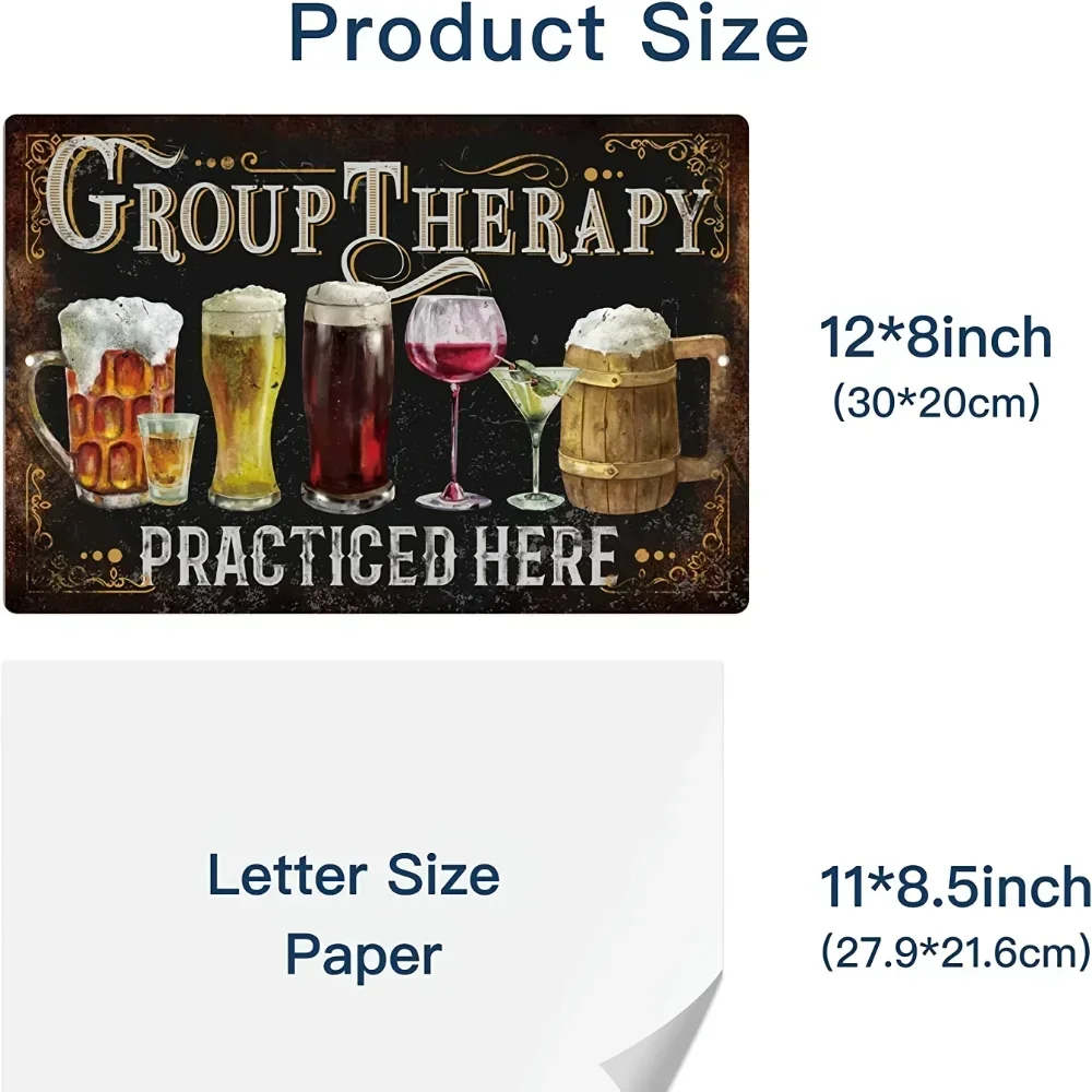 Add humor and character to your space with this Vintage Funny Group Therapy Metal Sign. Measuring 12x8 inches, this tin sign is the perfect size for any wall or door. The design features a classic retro look with witty text that’s sure to make guests smile. Crafted from durable metal, it offers long-lasting quality and rustic charm. The pre-drilled holes make hanging easy in any room. Ideal for man caves, bars, garages, or entertainment areas. Its distressed finish gives it an authentic vintage appeal. Lightweight and sturdy, it can be mounted or leaned on a shelf for a casual look. Great as a gift for friends who love humor and classic style. Bring laughter and personality to your decor with this vintage-inspired metal wall sign.