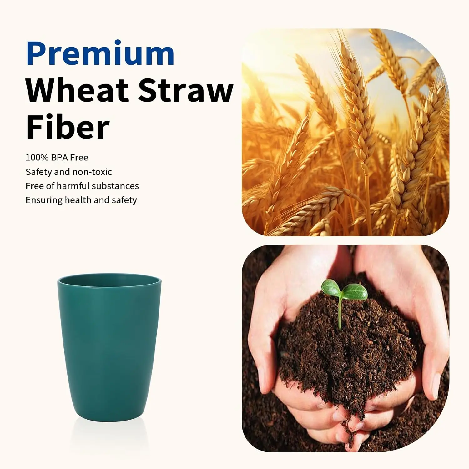 These wheat straw drinking cups offer a durable and eco-friendly option for everyday use. Their unbreakable construction makes them ideal for families, kids, and outdoor activities. Each cup is lightweight, making them easy to hold and carry. The set includes twelve cups in six soft, attractive colors. Their 12-ounce capacity is perfect for water, juice, tea, or daily beverages. The smooth interior makes them easy to clean and rinse. These reusable tumblers help reduce waste compared to disposable cups. Their sturdy design resists cracks and chips over time. They stack neatly to save space in cupboards or drawers. This colorful cup set adds convenience, safety, and style to your daily drinkware collection.